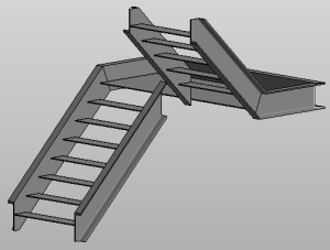 | Escada montada: Escada de aço (lance de escada não-monolítico e patamar não-monolítico) |