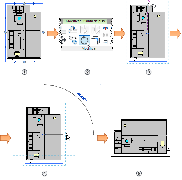 (Rotacionar). Nota: Se a ferramenta Rotacionar não estiver disponível na paleta Propriedades para a vista, defina a Orientação para o Norte do projeto.