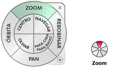 Nota: Quando um dos círculos de navegação completa é exibido, você pode manter pressionado o botão do meio do mouse para efetuar pan, rolar a roda para ampliar e reduzir o zoom e manter pressionada a tecla Shift e o botão do meio do mouse para orbitar o modelo.