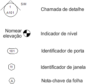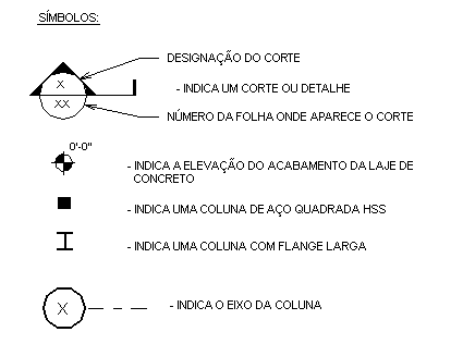 - Legenda de símbolo: uma lista de símbolos que são usados em desenhos.