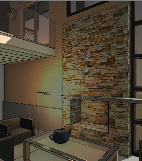 Utilize o grupo de parâmetros Realista na caixa de diálogo Opções de exibição gráfica para aplicar um brilho e tom visualmente atraente para a cena.
