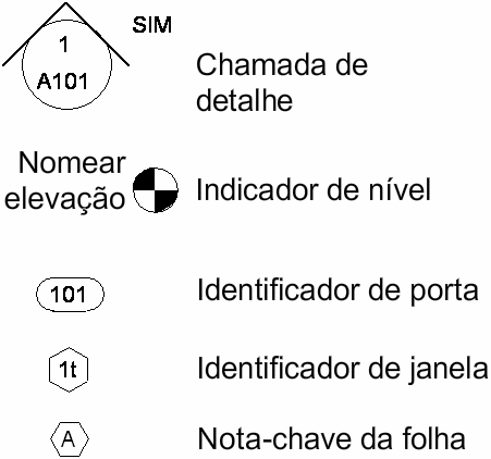 A legenda do símbolo a seguir identifica os símbolos de anotação que são usados em um conjunto de documentos de construção.