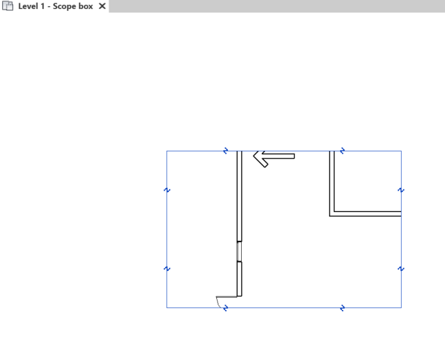 Caixa de escopo rotacionada exibida na vista do projeto onde foi criada