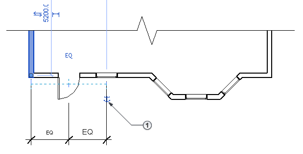 A imagem a seguir mostra a cota de igualdade com o elemento selecionado em vermelho e o símbolo de âncora
