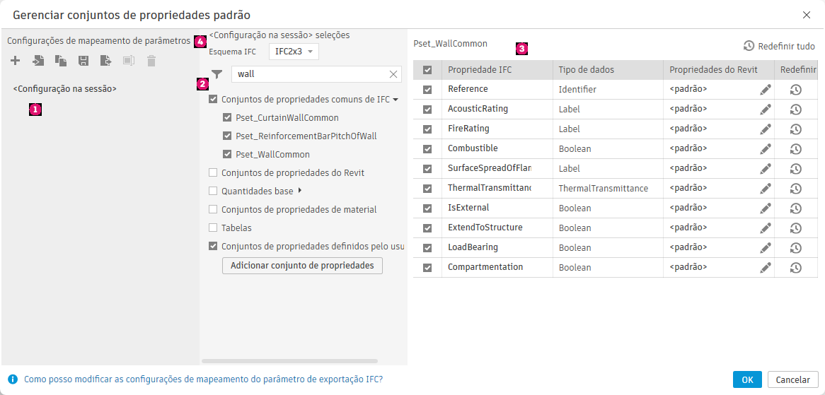 – Selecionar as propriedades do Revit e mapeá-las para as propriedades do IFC.