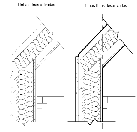 Use a ferramenta Linhas finas para ativar ou desativar as espessuras de linha em uma vista do projeto.
