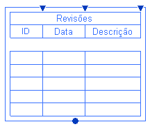 A parte inferior da tabela de revisão exibe o ponto azul. As linhas de eixo são exibidas para indicar o montante de espaço requerido para cada linha das informações da revisão (assumindo uma linha por revisão; em uma folha, valores longos passam para a próxima linha). Neste modo, as linhas de eixo são exibidas a despeito da tabela de revisão estar ou não definida para exibir as linhas de eixo.