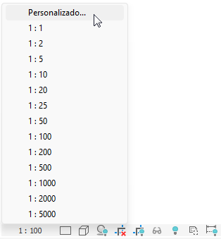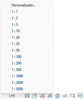 É possível atribuir uma escala diferente para cada vista no projeto. Também pode-se criar escalas personalizadas da vista.