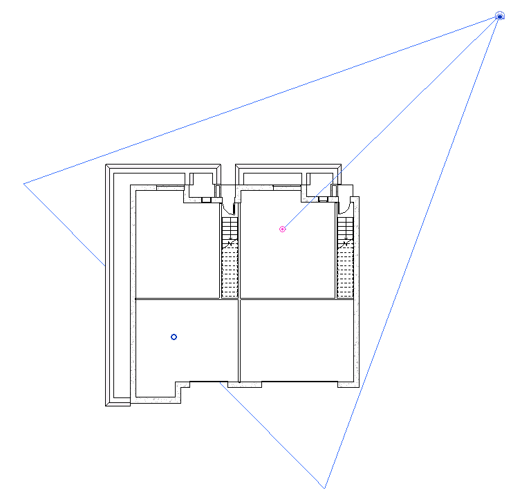 Câmera selecionada em uma vista de planta
