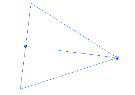 O ponto oco azul é o ponto de foco e o ponto rosa é o ponto alvo.