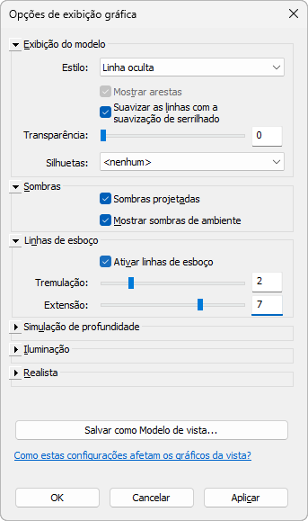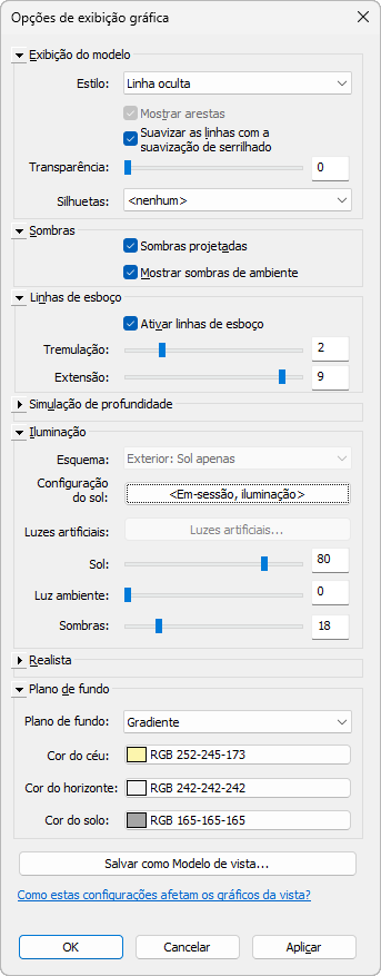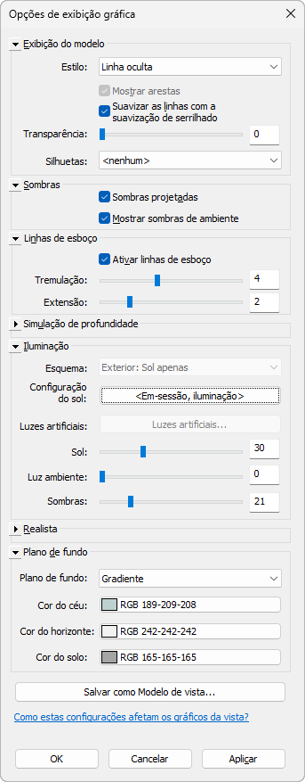 Esta vista utiliza as seguintes configurações na caixa de diálogo Opções de exibição gráfica: