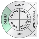 | orbitar um modelo com a ferramenta Órbita | exiba um dos círculos de visualização de objetos ou de navegação completa. Clique e mantenha pressionada a seção Órbita. O cursor muda para o cursor Órbita. Arraste para girar o modelo.