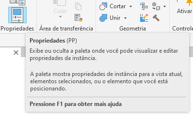 Quando o cursor é mantido sobre uma ferramenta na faixa de opções, por padrão o Revit exibe uma dica de ferramenta. A dica de ferramenta fornece uma breve descrição da ferramenta. Se o cursor permanece sobre a ferramenta na faixa de opções por mais um tempo, informações adicionais são exibidas, se disponíveis. Quando a dica de ferramenta está visível, é possível pressionar F1 para a ajuda sensível ao contexto, que fornece mais informações sobre aquela ferramenta.