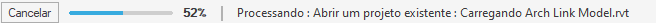 A barra de desempenho é exibida no lado esquerdo da barra de status quando um arquivo grande está sendo aberto. Ela indica o progresso do download.