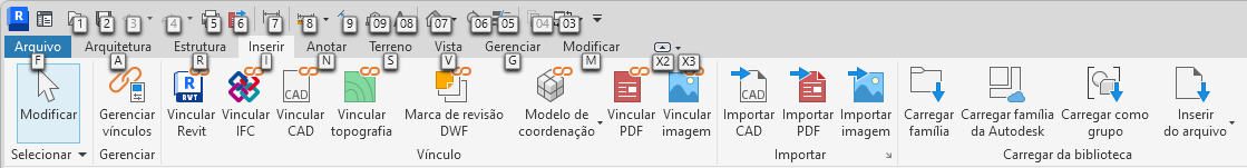 Se uma guia da faixa de opções tiver um painel expandido contendo ferramentas adicionais, digite sua dica de tecla para exibir o painel e ver as dicas de teclas dessas ferramentas.