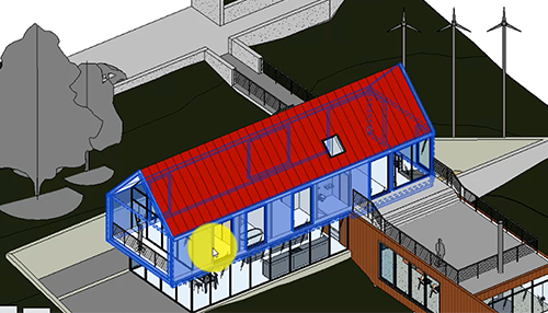 Na parte 3 do tutorial, você usa a ferramenta Sólido topográfico para criar um terreno e adicionar preenchimento com uma plataforma de construção com base nas paredes externas do modelo.