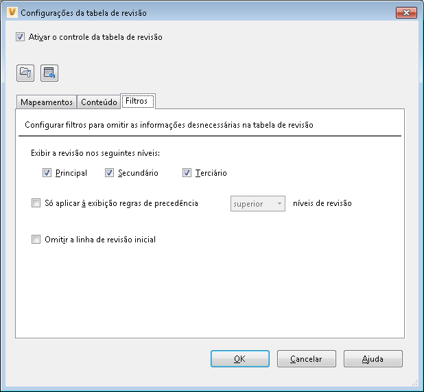 Na caixa de diálogo Configurações da tabela de revisão, selecione a guia Filtros.