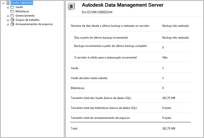 Exiba detalhes de um servidor do Vault, incluindo o número de dias desde a última cópia de segurança do console do servidor, número de Vaults ativados e número de bibliotecas.