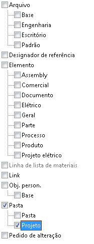 Pasta | Use a associação de pasta para criar uma propriedade de pasta personalizada. A propriedade personalizada pode ser restringida a uma determinada subclasse de pasta, como uma pasta ou um projeto básico. |