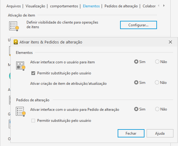 Desative o recurso Itens ou forneça aos usuários opção para desfazer a desativação na caixa de diálogo Ativar itens e pedidos de alteração.
