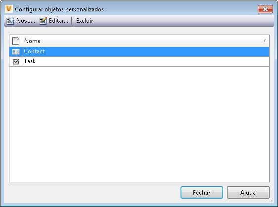 Clique em Configurar para abrir a caixa de diálogo Configurar objetos personalizados.