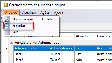 Para exportar a lista de usuários ou grupos: