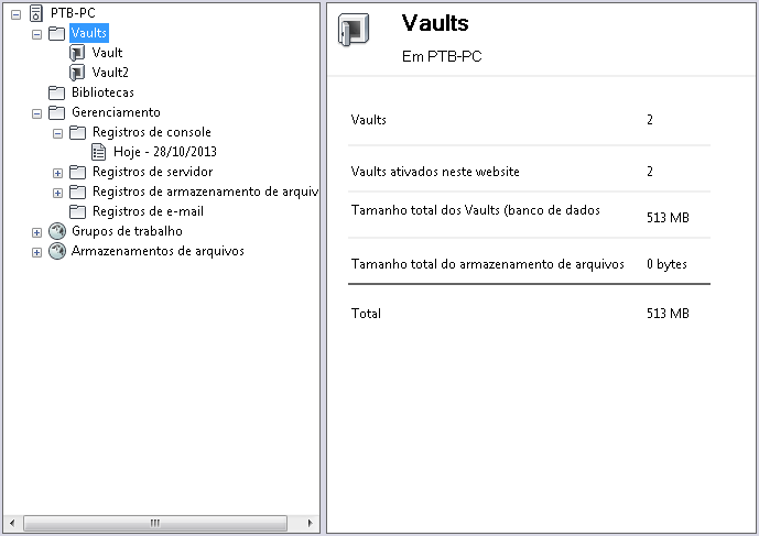 total de espaço utilizado pelo servidor do Vault