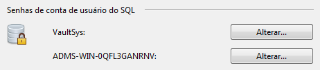 Quando o Vault é instalado, senhas padrão são fornecidas para as contas de VaultSys e ADMS_%SiteName% SQL Service. O administrador pode alterar essas senhas para aumentar a segurança.