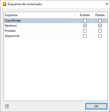 Selecione Esquemas de numeração para definir quais esquemas de nomes são válidos para uso em sua configuração de cópia de projeto.