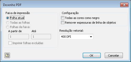 Observação: Somente uma montagem ou uma peça aberta do Inventor pode ser selecionada.
