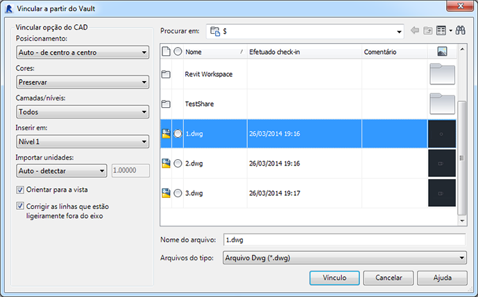 Insira um arquivo DWG armazenado em um vault para o projeto atual do Revit.