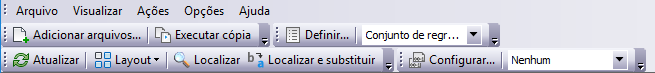 A barra de ferramentas consiste em cinco menus: Arquivo, Visualizar, Ações, Opções e Ajuda.