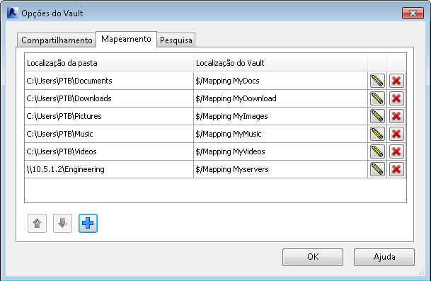 Importante: Se você não clicar em OK na caixa de diálogo Opções do Vault, as alterações de mapeamento não serão salvas.