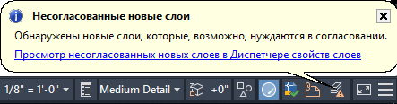 Перед выполнением некоторых задач, например, печати, сохранения или восстановления конфигурации слоев имеется возможность получения уведомлений о добавлении к текущему чертежу новых слоев или о добавлении слоев к одному из присоединенных файлов внешних ссылок. Таким образом можно избежать потенциальных проблем, связанных, например, с печатью объектов, добавленных к чертежу на новом слое. Можно управлять определением в чертеже новых слоев либо отказаться от использования этой функции. Можно настроить команды, например, СОХРАНИТЬ или ПЕЧАТЬ для проверки программой списка слоев и уведомления о появлении новых слоев. Уведомление может выдаваться только о новых слоях, добавленных к файлам внешних ссылок, или включать новые слои в текущем чертеже и файлах внешних ссылок.