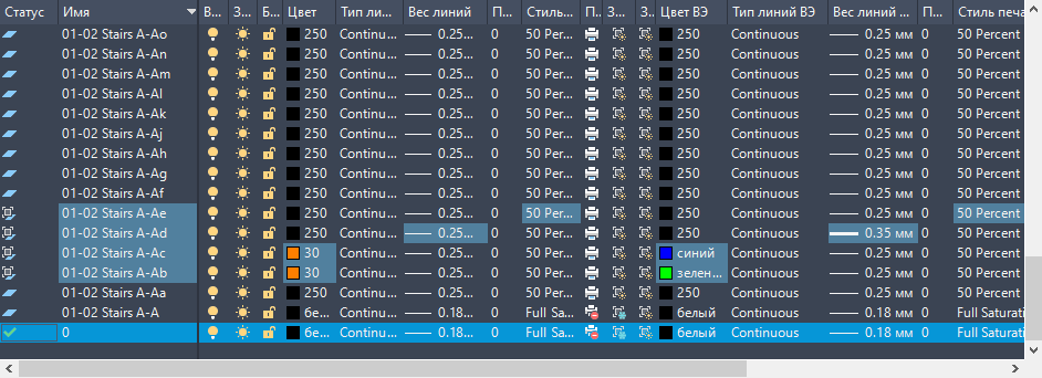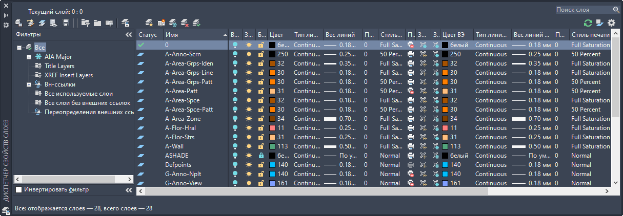 Диспетчер свойств слоев позволяет систематизировать, сортировать и группировать слои, а также работать со стандартами именования слоев, стилями ключей слоев, фильтрами слоев, переопределениями слоев и сохраненными конфигурациями слоев.
