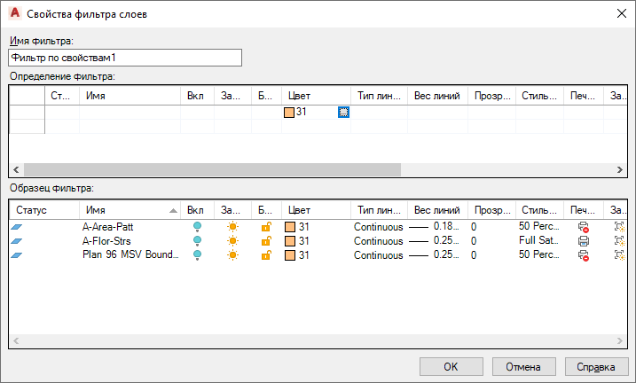 Создание фильтра свойств слоев
