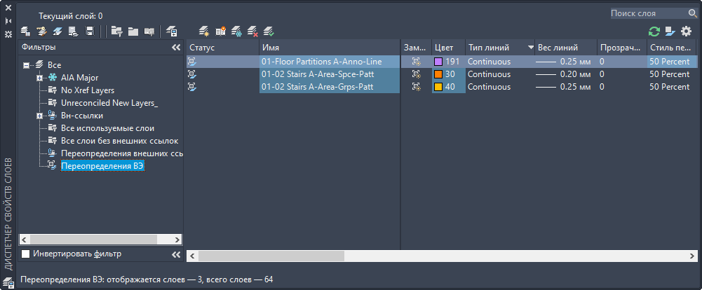 - В режиме просмотра структуры, где перечислены все слои с переопределениями видовых экранов, отображается готовый фильтр "Переопределения видовых экранов".