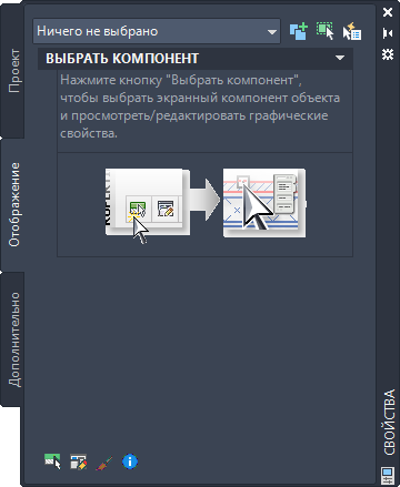 - Если объект не выбран, в нижней части вкладки "Отображение" нажмите