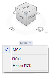 В меню ПСК, расположенном под инструментом ViewCube (Видовой куб), указано имя текущей ПСК в модели. Это меню позволяет восстановить одну из именованных ПСК, сохраненных в модели, или переключиться на МСК, или определить новую ПСК. Если в меню выбрать элемент "МСК", можно переключить систему координат из ПСК в МСК. Команда "Новая ПСК" позволяет поворачивать текущую ПСК на основе одной, двух или трех точек для определения новой ПСК. Если выбрать команду "Новая ПСК", определяется новая ПСК, которой по умолчанию задается имя "Без имени". Чтобы сохранить недавно определенную ПСК, присвоив ей имя, используйте параметр "Имя" команды "ПСК".