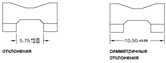 К размерным значениям можно добавить указание верхнего и нижнего отклонений. Если значения допусков отклонений одинаковы, они отображаются ос знаком ± и называются симметричными. В противном случае, значение верхнего отклонения (со знаком плюс) выводится над значением нижнего отклонения (со знаком минус).