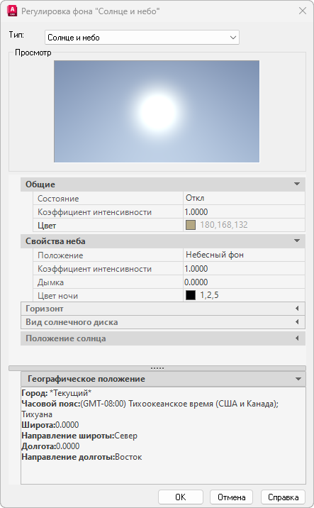 СВОЙСТВАСОЛНЦА (команда) найти: свойства неба