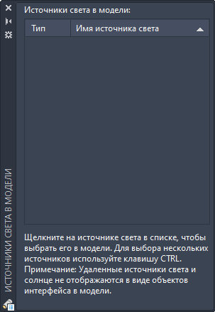 Отображение списка различных типов источников света с именами, которые используются в чертеже.