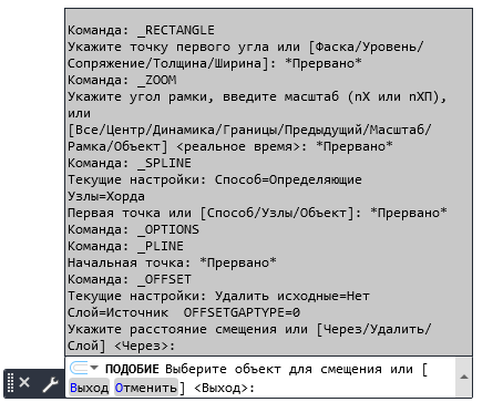 | Повтор предыдущей последовательности команд | Выберите последовательность и нажмите клавиши CTRL+C. Затем в командной строке нажмите CTRL+V. |