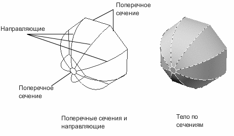Задание разомкнутых или замкнутых кривых в том порядке, в котором через них будет проходить поверхность или тело.