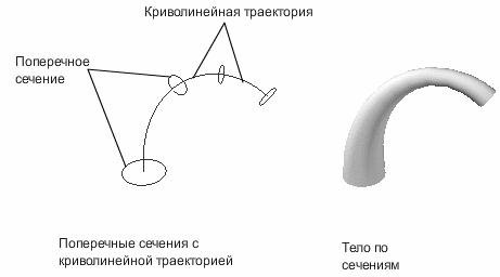 Создание 3D тела или поверхности путем задания ряда поперечных сечений. Поперечные сечения определяют форму получаемого в результате тела или поверхности. Требуется задать по крайней мере два поперечных сечения.