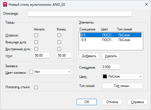 Описание не является обязательной характеристикой стиля мультилиний. Его длина не должна превышать 255 символов, включая пробелы.