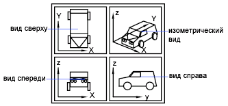 Выбранный ортогональный вид ориентируется относительно мировой системы координат, которая задана системной переменной UCSBASE (параметр по умолчанию). При восстановлении одного из ортогональных видов программа автоматически зумирует его до границ текущего видового экрана.