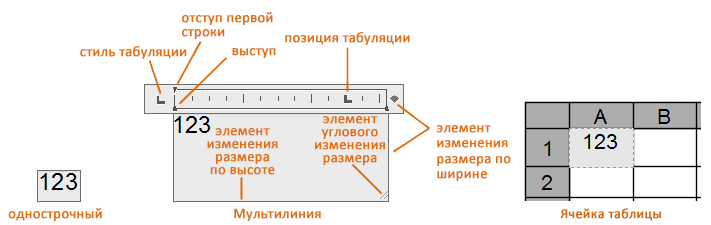 В зависимости от типа текстового объекта вид редактора может отличаться.