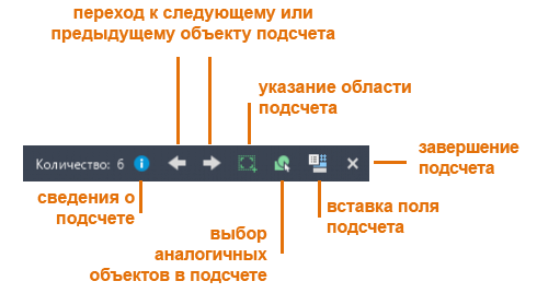 3. Все экземпляры указанного объекта выделяются, и на панели инструментов «Количество» отображается результат подсчета. Эта панель инструментов содержит несколько команд и параметров для просмотра подсчитываемых объектов и управления ими.