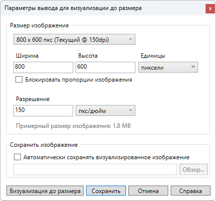 Указание формата и разрешения вывода визуализированного изображения при визуализации в окно визуализации.
